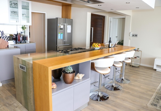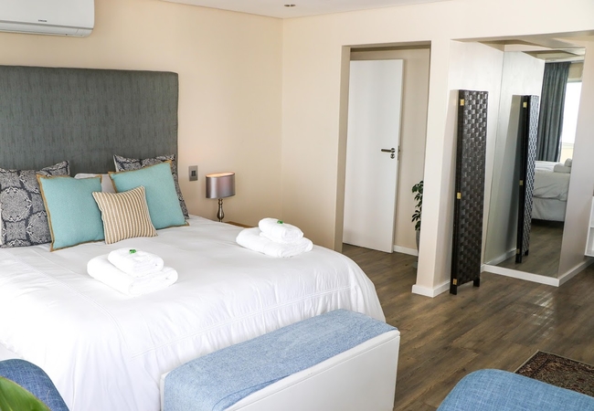Viewpoint Holiday Apartment has three bedrooms sleeping six guests maximum. The bedrooms all offer luxury linen, air-conditioning and TV. The main bedroom is furnished with a King-size bed and has an en-suite bathroom. Bedroom Two also has a King-size bed and Bedroom Three has a double bed. These two rooms share a bathroom. There is an open plan kitchen and living area as well as a closed off scullery area. The kitchen is fully equipped for self catering and includes a SMEG oven, Nespresso machine, a washing machine / tumble dryer and dishwasher. The spacious lounge and dining area is comfortably furnished and fitted with a TV and air-conditioning. There is also a balcony with incredible views.