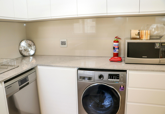 There is an open plan kitchen and living area as well as a closed off scullery area. The kitchen is fully equipped for self catering and includes a SMEG oven, Nespresso machine, a washing machine / tumble dryer and dishwasher.