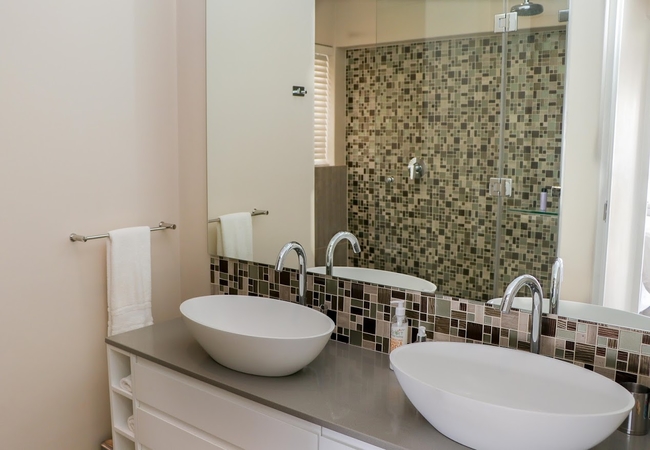 The bedrooms all offer luxury linen, air-conditioning and TV. The main bedroom is furnished with a King-size bed and has an en-suite bathroom. Bedroom Two also has a King-size bed and Bedroom Three has a double bed. These two rooms share a bathroom.