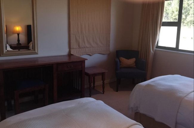 Accommodating up to four guests, this deluxe two-bedroom villa features an upstairs bedroom with a queen-sized bed and en-suite bathroom, and a downstairs bedroom with twin single beds, also en-suite. The lounge offers comfortable seating, a cozy gas fireplace, and DStv. The kitchen is fully equipped for convenient self-catering, ensuring a relaxing and enjoyable stay.