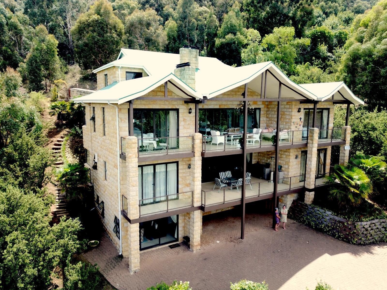 Relax on your private patio with a built-in braai and comfortable seating, or unwind in the living room, complete with a gas fireplace (extra charge for gas), a six-seater dining table, reading lamps, and DStv. The main bedrooms on the upper floors offer beautiful vistas of the surrounding Witteberge (White Mountains).