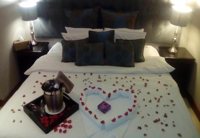 There is one Honeymoon Suite, which is furnished with a King-size bed. This room features an en-suite spa bath and shower, basin and toilet. This room also has a private patio, with views of the pool. Facilities included in this room are free Wi-Fi, air-conditioning, a TV with selected DStv channels and tea / coffee making facilities.