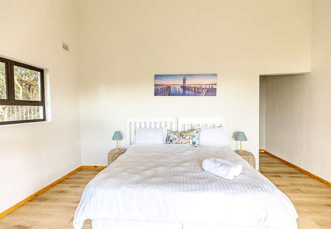 This spacious villa accommodates up to eight guests in four queen-sized bedrooms, each with a private shower-only bathroom. Ideal for families or groups, the villa features a fully equipped kitchen, a comfortable lounge area with TV and satellite channels, and an inviting outdoor space that includes a plunge pool, small garden, and a braai/barbecue area. Guests can enjoy a variety of views—sea, garden, pool, ocean, and even river—from the balcony and outdoor dining area. Additional amenities include tea and coffee facilities, a refrigerator, microwave, oven, fan, and non-smoking interiors, ensuring a comfortable and relaxing stay.