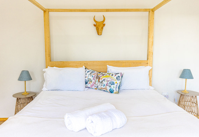 This spacious villa accommodates up to eight guests in four queen-sized bedrooms, each with a private shower-only bathroom. Ideal for families or groups, the villa features a fully equipped kitchen, a comfortable lounge area with TV and satellite channels, and an inviting outdoor space that includes a plunge pool, small garden, and a braai/barbecue area.