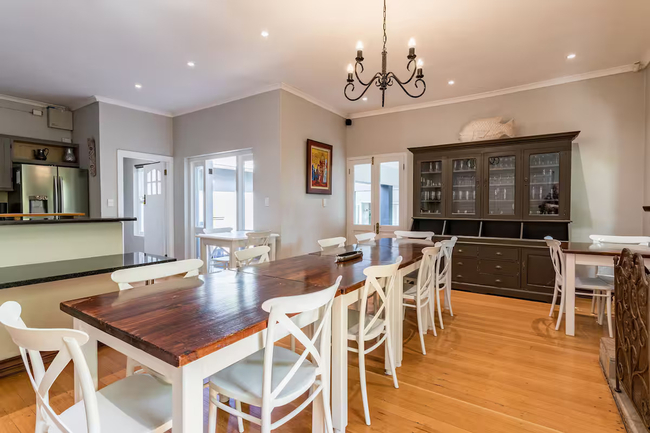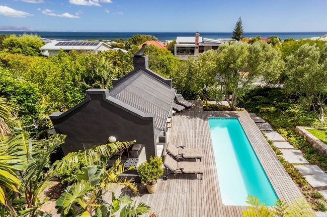 At Villa Blu, the calm of coastal living meets the richness of refined comfort. Just moments from Hermanus’s renowned Grotto Beach, this elegant retreat invites guests to unwind in style and savour a truly memorable stay. Villa Blu is a generously proportioned, double-storey residence designed to accommodate guests in both comfort and privacy. The home offers eight en-suite bathrooms—five on the ground level and three upstairs—each thoughtfully appointed with both a separate bath and shower, as well as bathrobes and a hairdryer for added convenience. The kitchen is fully equipped for self-catering, featuring high-end appliances, a pizza oven, and all the essentials for meal preparation. It flows seamlessly into a welcoming dining space and a stylish lounge fitted with a television and satellite channels, creating an inviting setting for shared moments and relaxation. Throughout the home, guests will find a range of modern amenities including complimentary Wi-Fi, a safe, a writing desk, and a comfortable sitting area. A fireplace adds warmth and character, particularly on cooler evenings. Expansive views of the sea, mountains, garden, and pool can be enjoyed from various vantage points, including balconies, patios, and large windows. The property is further enhanced by an extensive kitchen setup which includes a refrigerator, microwave, toaster, oven, 2-plate stove, dishwasher, bar fridge, and coffee and tea facilities. Outdoor areas are well-furnished and designed for easy living, featuring a dining space, braai/barbecue facilities, and peaceful garden nooks perfect for al fresco meals or quiet reflection. For guests seeking space and tranquility, Villa Blu delivers. Multiple lounges, a formal dining room, an inner courtyard, and a dedicated whale-watching deck are just some of the areas designed for rest and leisure. Several private verandas and patios offer quiet corners to enjoy the scenery, while a sparkling pool and thatched lapa provide the ideal backdrop for warm afternoons. The enclosed garden offers both privacy and charm, completing the setting. As a notable advantage, Villa Blu is powered by solar energy, ensuring a stable and uninterrupted electricity supply.
