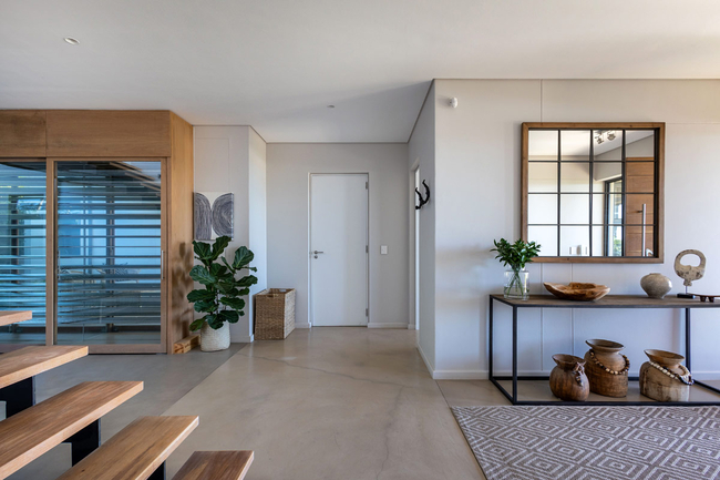 The lounge area opens up to the deck and pool, creating the perfect space for relaxation and entertainment. Long summer days can be spent basking in the sun while taking in the views of the ocean, Tsitsikamma Mountains, and Robberg Peninsula. The modern, well-equipped kitchen includes a serving window to the deck and BBQ area, making alfresco dining effortless.
