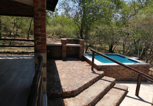 Villa de Leeu is a modern, open plan cottage with large under-cover verandah with a built in braai. Situated very close to the Marloth Park main gate and just over 10 minutes' drive to Crocodile Bridge gate, which is the one of the entry points to Kruger Park.