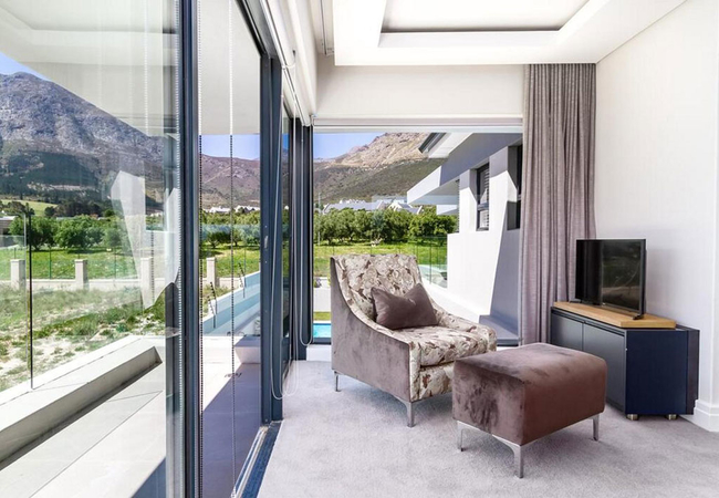 Enjoy specially prepared afternoon treats and teas while relaxing in the sunroom. Wind down with a poolside drink while enjoying the breath-taking, uninterrupted views of surrounding vineyards and mountains, awakening all your senses. Here, modern, sleek architecture kisses Mother Nature for much-needed, soul-satisfying tranquillity. A private lounge is located upstairs to enjoy quiet moments and reading books. The private lounge has a fireplace and boasts beautiful vineyard and mountain views. The villa offers free high-speed Wi-Fi and Netflix.