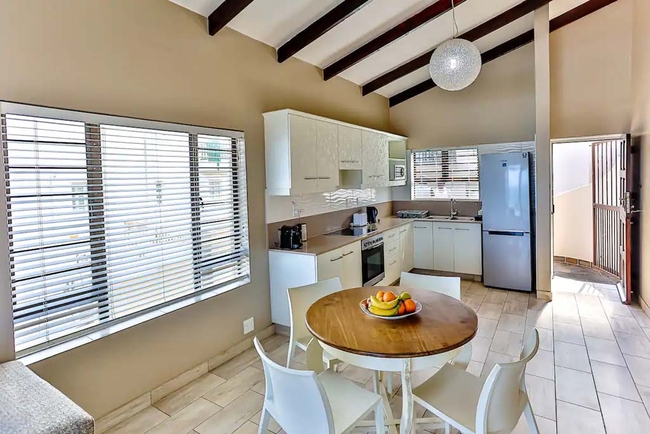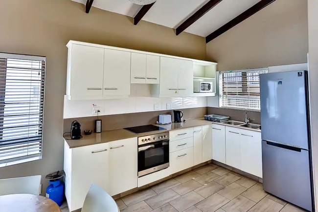 This inviting apartment accommodates up to 4 guests and features 2 air-conditioned bedrooms. The main bedroom is furnished with a queen-size bed, while the second bedroom offers 2 single beds, making it ideal for families or small groups. There is 1 bathroom, which includes a modern shower. The fully equipped kitchen provides everything you need for a comfortable self-catering stay, including a fridge, stove, microwave, and a Nespresso coffee machine with a plunger and coffee beans for that perfect morning brew. The open-plan living area flows onto a private balcony, offering a partial sea view where you can enjoy the coastal breeze. The apartment also comes with a Smart TV and Wi-Fi, allowing guests to log into their own Netflix or DStv accounts for entertainment.