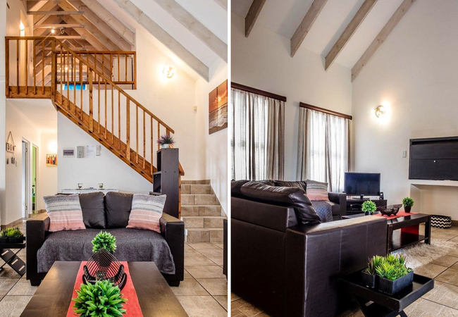 The villa is comprised of three bedrooms and three bathrooms with a spacious open plan kitchen, indoor braai, lounge, full DStv, outside braai patio and swimming pool.