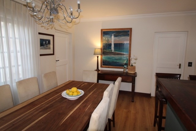 Villa on the Bay is a stylish double-storey home offering the ultimate in luxury self-catering accommodation—perfect for those seeking the comfort, space and privacy of a high-end residence, without compromising on the quality of a top-class hotel. Ideally located in Camps Bay, this elegant villa is just a short walk from the beach and vibrant promenade, making it the ideal base for a memorable seaside holiday. The villa boasts a spacious open-plan living area, beautifully furnished and designed for both relaxation and entertainment. Unwind in the sophisticated lounge or host guests at the sleek, modern bar complete with an under-counter wine cooler and fridge. The dining area flows effortlessly into a state-of-the-art kitchen, fitted with premium Siemens appliances, including a built-in coffee machine. For added convenience, there is a separate laundry and drying room. Step outside to a large covered patio with built-in BBQ and outdoor lighting, perfect for alfresco dining. Upstairs, a wooden sun deck offers panoramic views—ideal for sundowners or quiet morning coffee. Guests can also enjoy a solar-heated swimming pool nestled in the patio area. Accommodation comprises three luxurious upstairs bedrooms, two of which are en-suite. The third bedroom has access to a separate bathroom, while an additional large downstairs room can be used as a fourth bedroom or TV lounge. There is also a guest shower located on the ground floor. The villa is fully solar-powered, ensuring uninterrupted comfort with no power outages. Features include fibre internet (100 Mbps), satellite TV, DVD and Hi-Fi system, armed response security, and secure on-site parking. Families are welcome, with a cot available on request. All linen and towels, beach towels included, are 100% cotton and of premium quality. Weekly housekeeping is provided, allowing guests to relax and truly enjoy their stay.