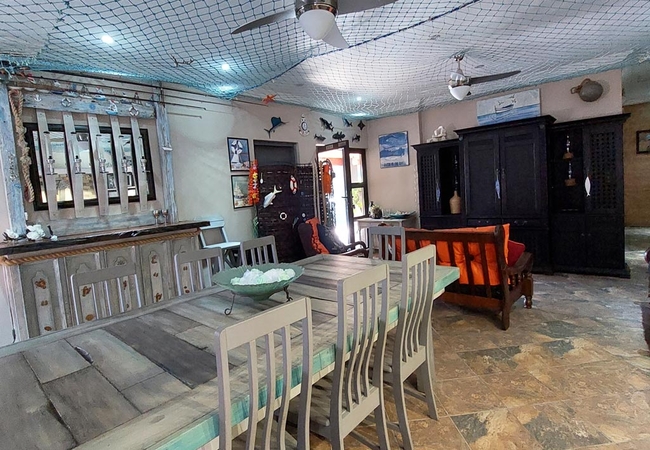 Villa Pesca has six bedrooms and five bathrooms. Four of the bedrooms are furnished with king-size beds that can be converted to 2 single beds on request. The 5th bedroom consists of 2 single beds with an adjoining room with a double bed. These 2 rooms share a bathroom. The en-suite bathrooms are fitted with showers, basins, and toilets. Guests need to bring their own towels.