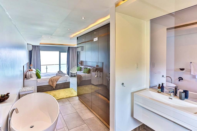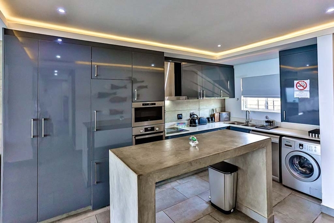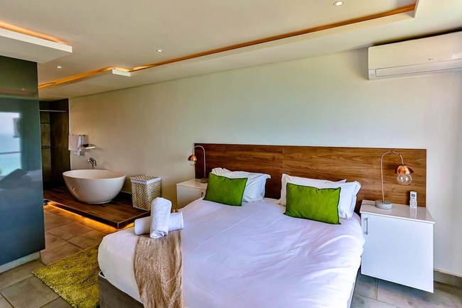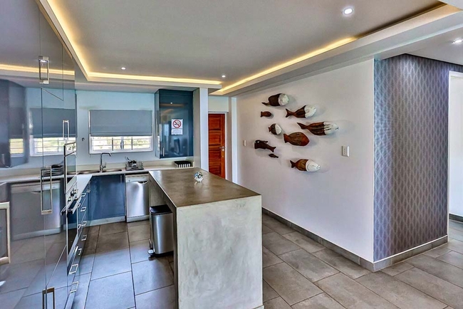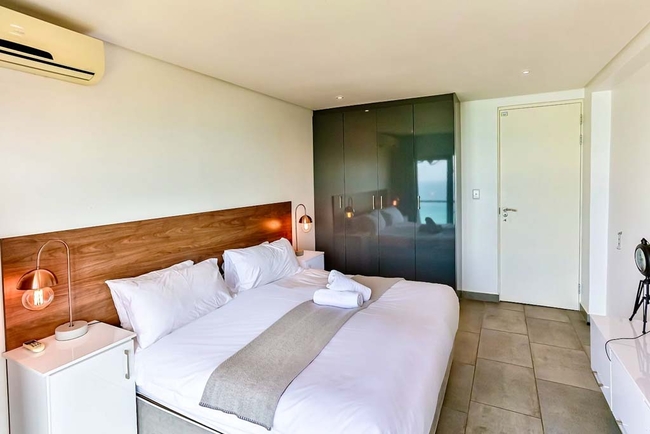 The apartment comfortably accommodates up to 6 guests in 3 well-appointed bedrooms. The main bedroom features a king-size bed and an en-suite bathroom with both a bath and shower. The second bedroom is also fitted with a king-size bed, while the third bedroom has a double bed. These two bedrooms share a second bathroom with a shower. The modern kitchen is fully equipped with all the essentials, including a fridge-freezer, stove, oven, microwave, washing machine, dishwasher, and tumble-dryer. Each bedroom, as well as the lounge, is fitted with a Smart TV offering Netflix, and the apartment comes with air-conditioning and complimentary Wi-Fi for your comfort. Undercover parking is available for smaller vehicles, with Guests have access to the communal swimming pool and braai area within the complex. Please note, the path leading down to the beach from the pool area is steep, but an alternative, more accessible route is available near the parking area on the south side of the complex. Villa Royale sits on a scenic cliff, offering unparalleled ocean views.
