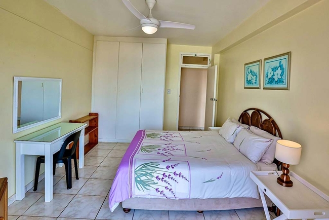 Villa Royale's amenities include a communal swimming pool and braai area, ideal for social gatherings. Please note that braaiing is only allowed in the designated area at the pool, as the unit's balcony is a non-braai zone. The complex offers two undercover parking bays; however, these are unallocated and may not be suitable for larger vehicles. Additionally, the path to the beach is a steep walk from the complex's south side.