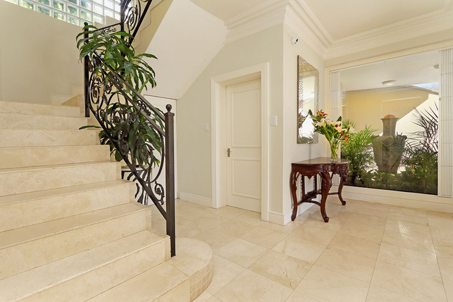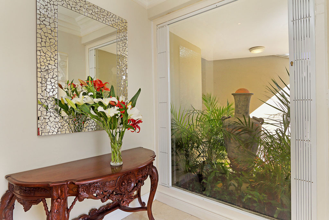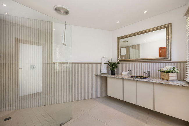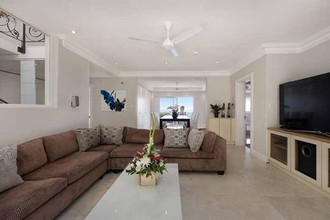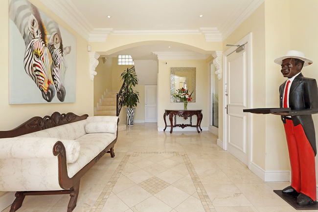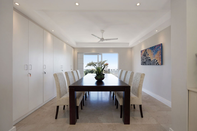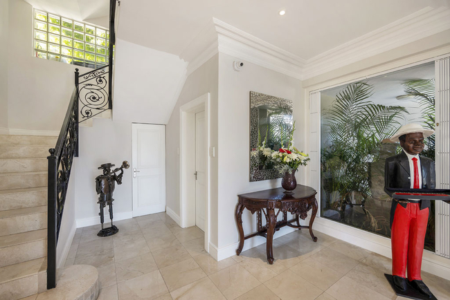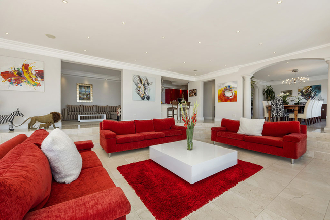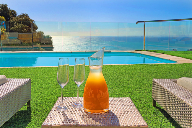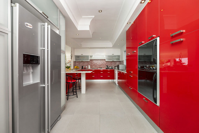 Villa Stanleon has five large en-suite bedrooms, all with balconies that have fabulous ocean views. The Master Bedroom is furnished with a King-size bed and has his and hers en-suite bathrooms fitted with a bath, shower, toilet and basin. The second bedroom is furnished with a Queen-size bed and has an en-suite bathroom fitted with a shower, toilet and basin. The third bedroom is furnished with twin beds and has an en-suite bathroom fitted with a bath, shower, toilet and basin. The fourth bedroom is furnished with a King-size bed and has an en-suite bathroom fitted with a bath, shower, toilet and basin. The fifth bedroom is furnished with a King-size bed and has an en-suite bathroom fitted with a bath, shower, toilet and basin. The multi-functional sea view office converts into a huge sixth bedroom and bathroom apartment if required. All bedrooms and bathrooms are equipped to a very high standard with air-conditioning, ceiling fans, heated towel rails, the latest flat screen TV's and individual room satellite TV service. The red sofas in the sunken living room create the perfect spot to catch up on some reading while the cool afternoon breeze flows through large sliding doors. Television and Wi-Fi will keep you connected, should you desire. Grab yourself a snack in the chic kitchen, decorated in a soothing red pastel and stocked with state of the art appliances. The totally unique and breathtaking garden with a tiered waterfall at the back of the Villa allows for a haven of peace and quiet, together with alfresco dining on a beautiful summers evening. There is a heated outdoor swimming pool. (Swimming pool fencing safety available on request) An integral Bose professional sound system is throughout the ground floor and patio area.