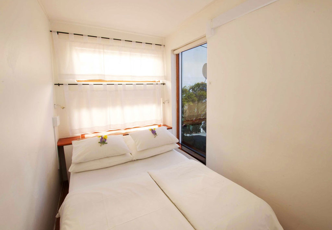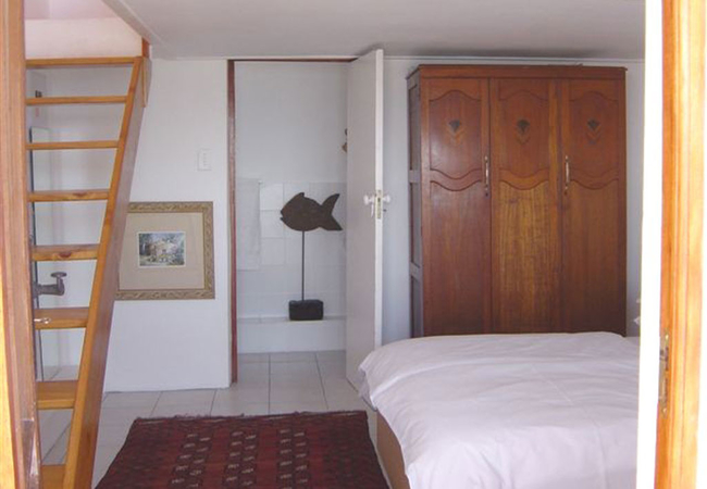 The Simplex is suitable for two adults and two young children. The compact bedroom has an extra-length double bed, with a shower, basin and toilet in the adjacent room. The open-plan kitchen has a double door fridge, a 3-plate stove and oven and a microwave oven. The lounge has two day-beds and leads out onto a timber patio. The garden table and chairs are shaded by a huge Jacaranda tree. Uninterrupted views of False Bay and surrounding mountain ranges are visible from every area of this apartment. In addition, the unit offers Wi-Fi, air-conditioning on request, and TV with DStv. The entrance to the apartment is via a gate. The barbecue area is in the small garden under the Jacaranda tree. Maximum security is provided for guests and their vehicles.