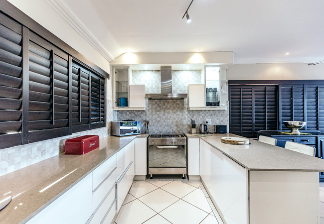 At Villa Ti Amo guests can splash about in the swimming pool or walk about in our gardens. The house has views of the Southbroom beach and lagoon. An outdoor dining area is available giving guests a choice to enjoy a lovely meal while basking in the scenery. The main house has five bedrooms. There is a lounge and fully equipped kitchen. Plush white leather couches face the sliding door in the living room, looking out into the lawn. Bed configurations range from double beds, twin beds and bunk beds and can accommodate up to eighteen guests. There are three bathrooms in the main house. The flat has a double bed, en-suite bathroom and kitchenette with a gas stove. There is a double sleeper couch which extends the sleeping capacity to four. There is also a bedsitter with a three quarter bed and an en-suite bathroom with a shower. This also has a kitchenette and a couch. Come join us for a relaxing stay. Surrounded by lush greenery and mesmerizing ocean blues.