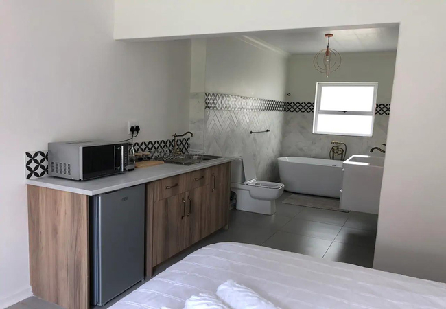 Queen-size bed and an en-suite bathroom with a bath. There is an open plan kitchen with a microwave, fridge and tea / coffee making facilities. Each unit has TV with satellite channels, free Wi-Fi, complimentary toiletries and access to free parking.