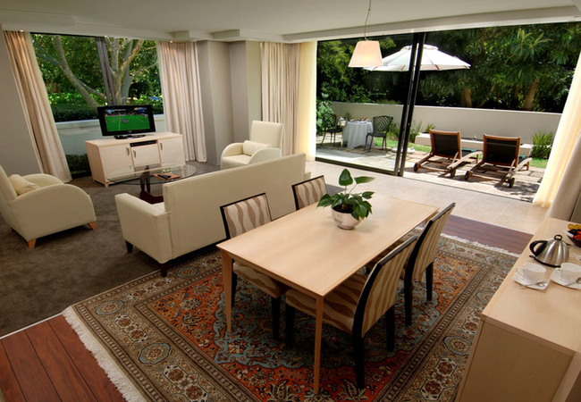 Choose from 20 rooms with patios located on the first floor level overlooking riverside gardens and the famous mountainscape of Table Mountain. The rooms feature King or twin beds, four sets of interleading rooms. En suite bathroom, Nespresso coffee station, all standard facilities.