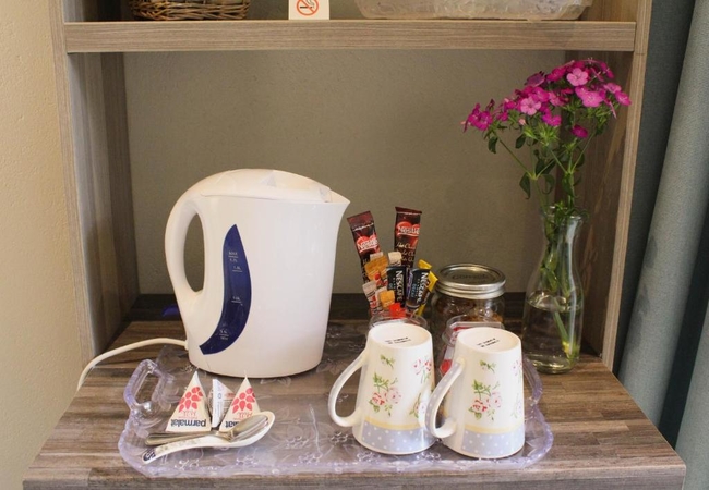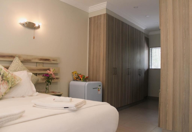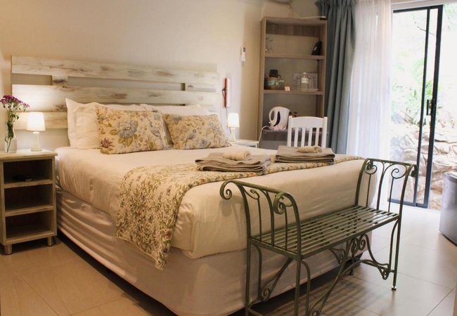 Standard Twin / King Room is a room with two single beds or one King bed. The room has an en-suite bathroom with shower, toilet and wash basin. This room has a view of the garden. The guest house has beautifully furnished rooms with their own en-suite bathrooms. The rooms are cleaned daily and breakfast is included with each room, except in the self-catering rooms. There is secure parking for guests' vehicles as well as braai facilities on the premises.
