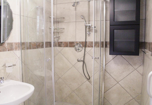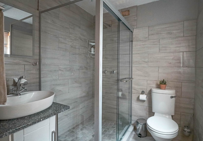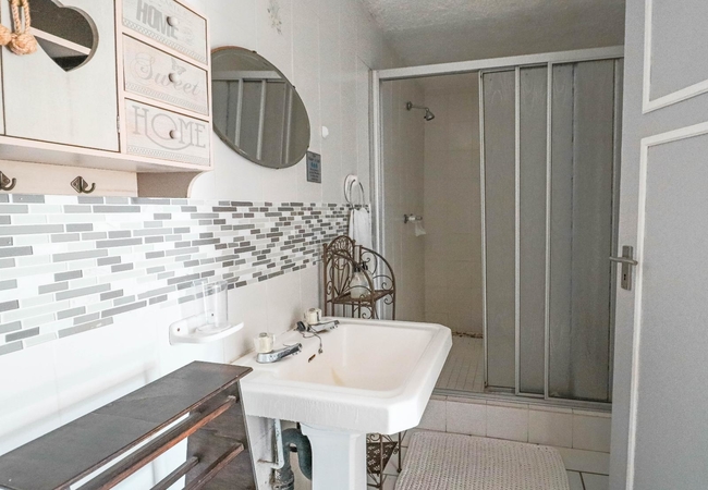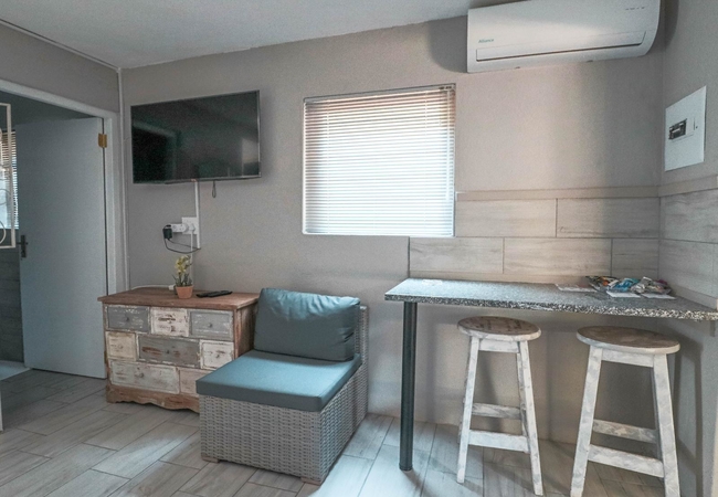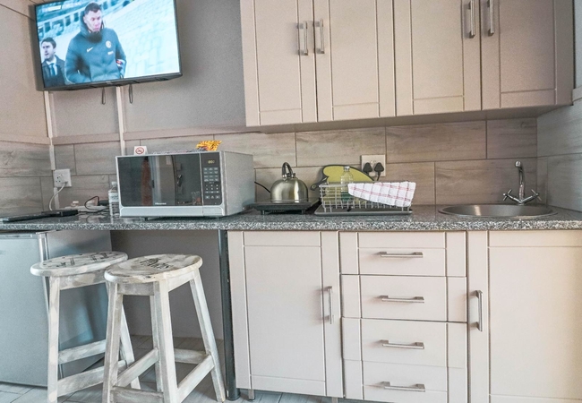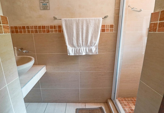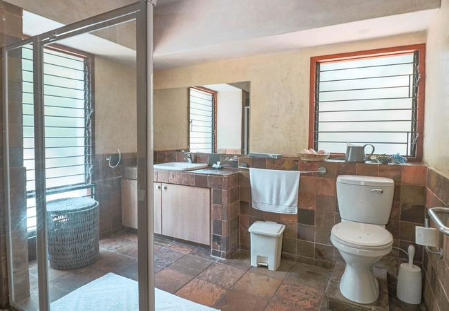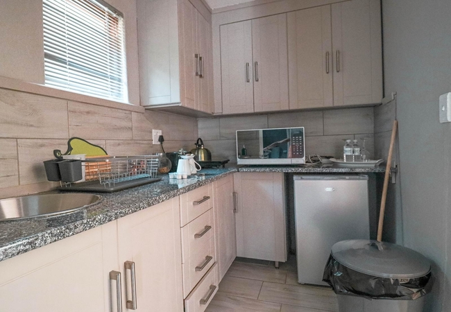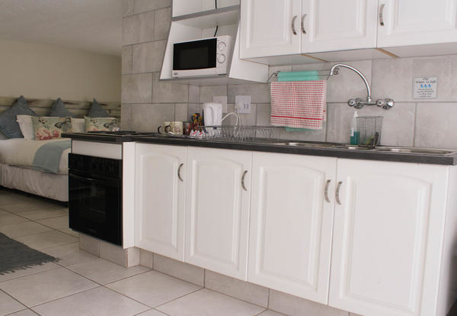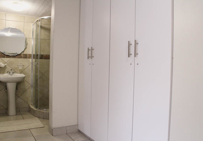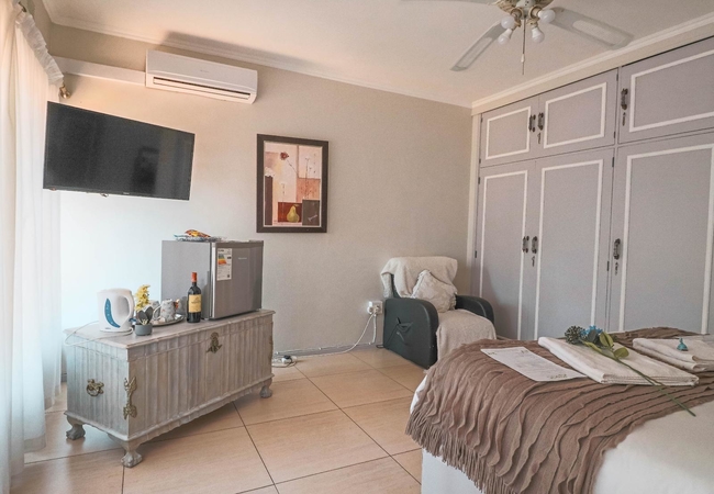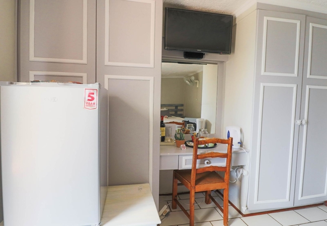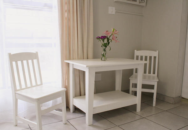 Family suite with double bed. The en-suite bathroom has a shower, wash basin and toilet. This unit has a lounge and kitchenette. The guest house has beautifully furnished rooms with their own en-suite bathrooms. The rooms are cleaned daily and breakfast is included with each room, except in the self-catering rooms. There is secure parking for guests' vehicles as well as braai facilities on the premises.