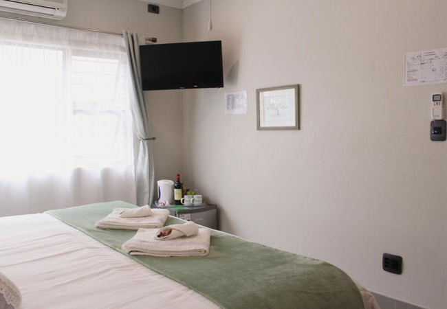 Double Room with one Double Bed. The room has an en-suite bathroom with shower, wash basin and toilet. All rooms have a TV with Kyknet (other DStv channels available on request). The guest house has beautifully furnished rooms with their own en-suite bathrooms. The rooms are cleaned daily and breakfast is included with each room, except in the self-catering rooms. There is secure parking for guests' vehicles as well as braai facilities on the premises.