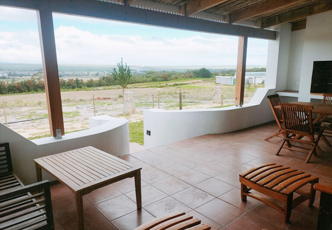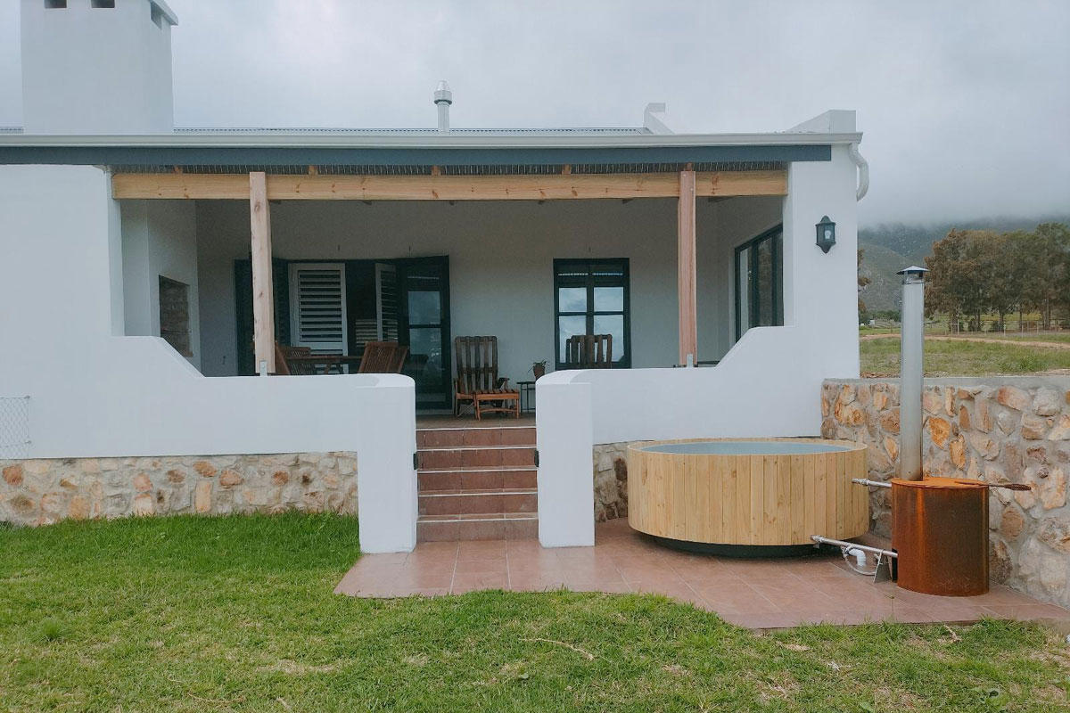 Outside is a patio with built in braai facilities, a hot tub and spectacular views of the Klein River valley and Stanford Village.