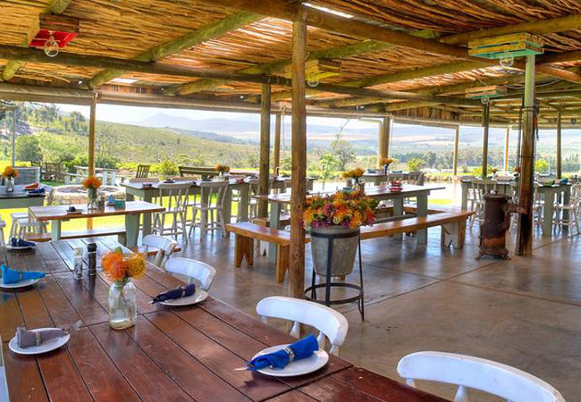 The Tasting Room is open 7 days a week, serving breakfast from 08h30 to 11h00 and lunch from 12h00 to 16h00. Chalkboard menu using locally sourced products. Fully licenced including Wine Tasting of the wines produced at Stanford Hills Estate.
