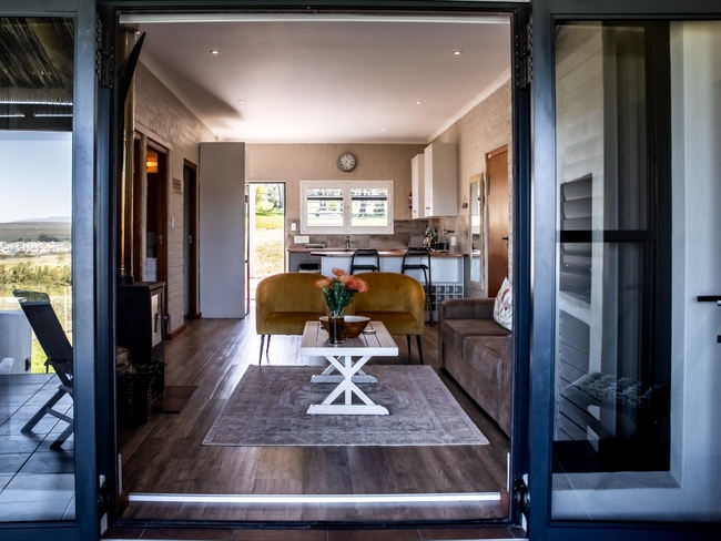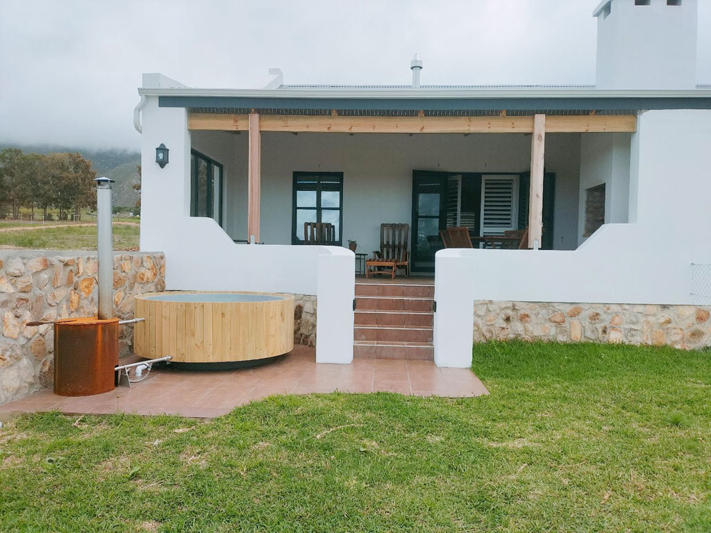 Outside is a patio with built in braai facilities, a hot tub and spectacular views of the Klein River valley and Stanford Village.
