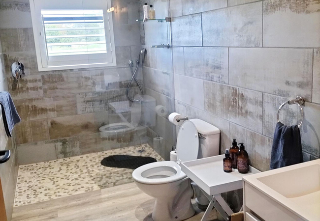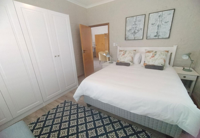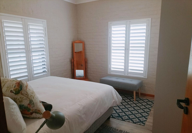 Vineyard Villa 2 is a semi-detached cottage in Stanford that has two bedrooms. The first room is furnished with a Queen-size bed and the other with two single beds. The shared bathroom is fitted with a shower, toilet and basin.