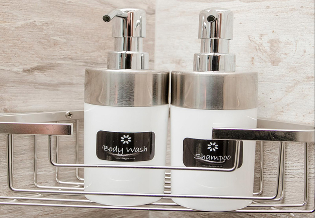 A beautifully styled bedroom with a Double bed and bedding. This room has a garden view. The en-suite bathroom has a shower, basin and WC. All rooms have private entrances, air conditioning, Wi-Fi and TV with Satellite channels. Complimentary toiletries and tea / coffee are also provided.
