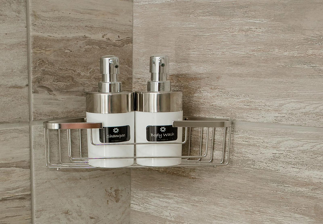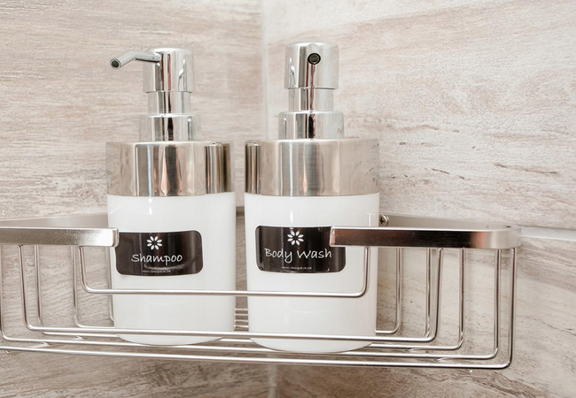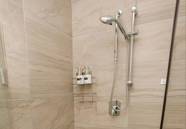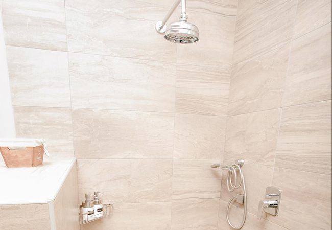 A beautifully styled bedroom with a Queen-size bed and high quality bedding. This room has a courtyard view. The en-suite bathroom has a shower. All rooms have private entrances, air conditioning, Wi-Fi and TV with Satellite channels. Complimentary toiletries and tea / coffee are also provided.