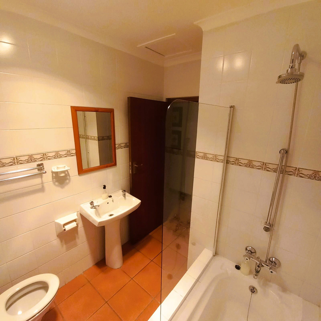 There are four bedrooms, two are furnished with a King-size bd and two are furnished with three single beds each. There are three bathrooms fitted with a bath / shower, toilet and basin. Linen and towels are provided.