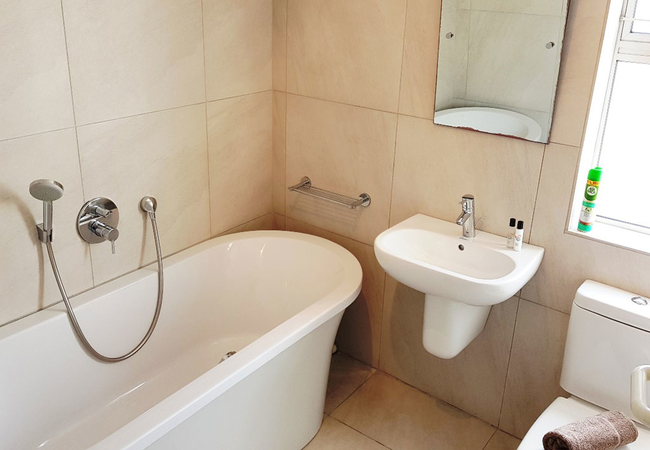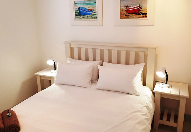 This house is close to the beach. Voorschoten has three bedrooms. The main bedroom has a King-size bed and en-suite bathroom with a shower. The second bedroom has a Queen-size bed and the third bedroom has two single beds. These two rooms share a bathroom with a bath. This kitchen is fully equipped for self catering and includes a dishwasher and washing machine. The living area is comfortably furnished and has a TV with satellite channels. This are leads onto a balcony with a built in braai. Secure parking is available.
