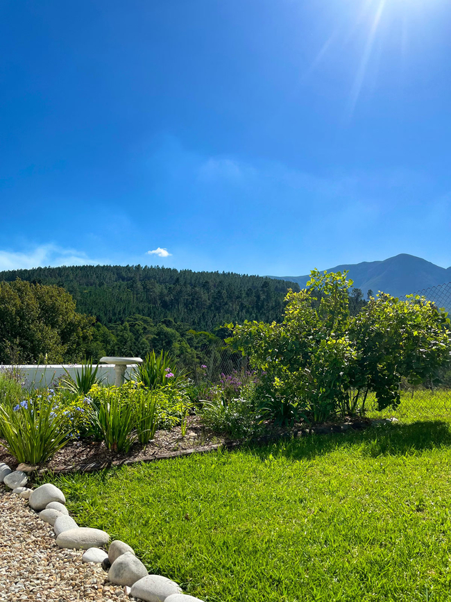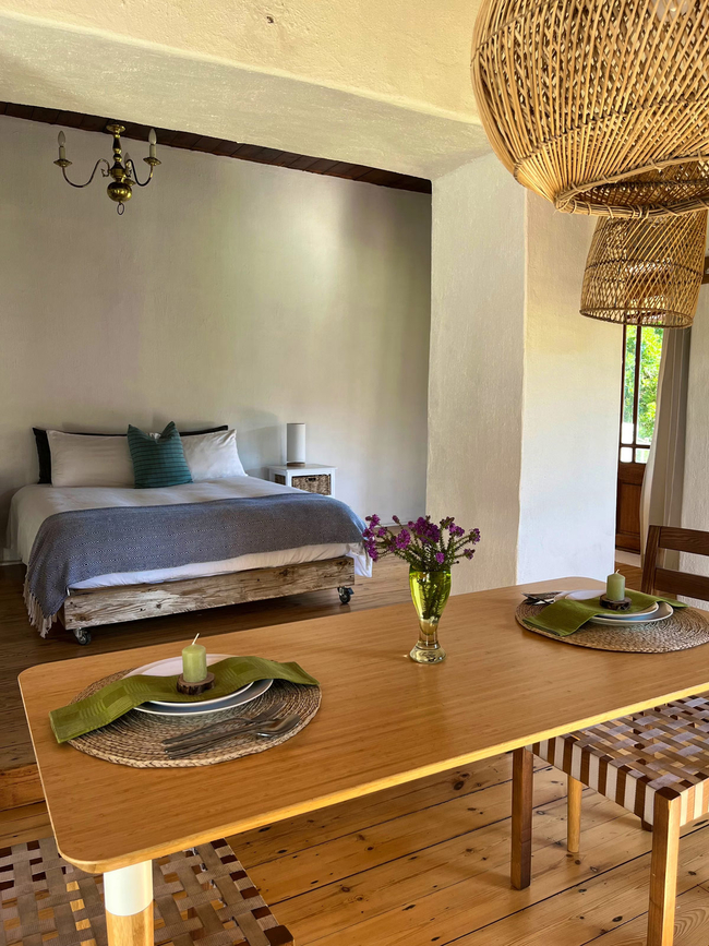 The deluxe Willdenowia Guest Suite accommodates up to two adults in a queen bed and features a fully equipped kitchenette along with a bathroom that includes both a separate tub and shower. Guests can enjoy views of the garden, river, and mountains, while relaxing in the comfortable sitting area or at the dining table. Additional amenities include Wi-Fi, non-smoking accommodations, coffee and tea facilities, a microwave, toaster, bar fridge, and a two-plate stove. Outside, the suite offers a patio and garden area, providing a tranquil space to unwind and take in the surrounding scenery.