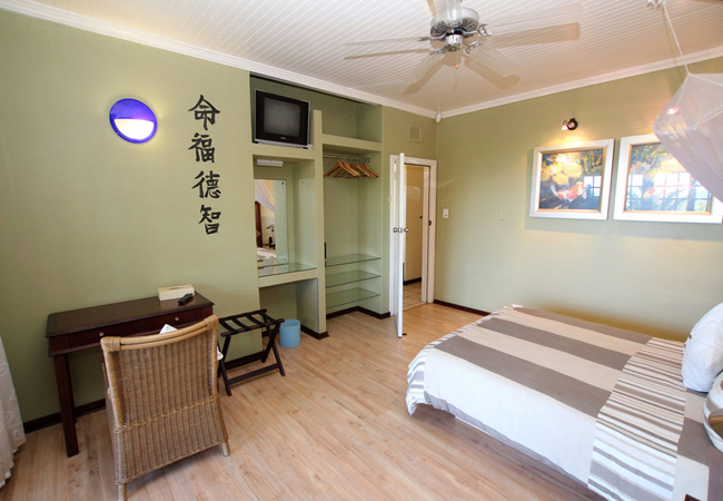 Garden Facing Room with a Patio, King Size Bed, Ceiling fan, DSTV Hospitality bouquet Mosquito Net, Shower/Bath, Safe, Linen Supplied, Towels Supplied, Toiletries Provided, Non Smoking,
