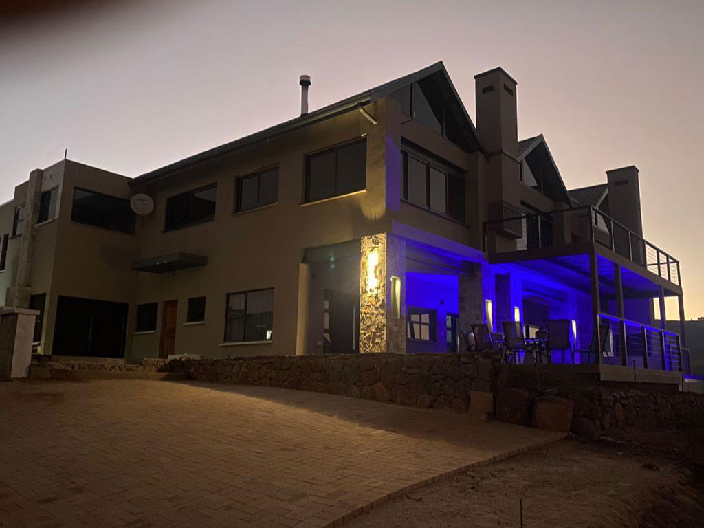 Walte Rest is a double-storey holiday home in Dullstroom that can accommodate a large group of 12 guests in six bedrooms with six bathrooms.