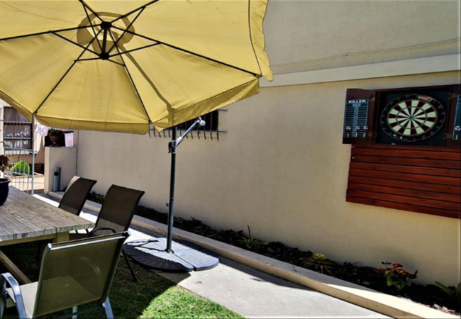 There is a private garden with braai facilities and garden furniture, while the patio directly outside the unit has a dart board and a table tennis table.