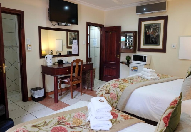 Family Room (Sleeps 4) - These rooms have a Queen-size bed and two three-quarter beds. Rooms are equipped with climate control air-conditioning, fiber internet, telephones, a safe, desk, DStv, mini bar and tea and coffee facilities.