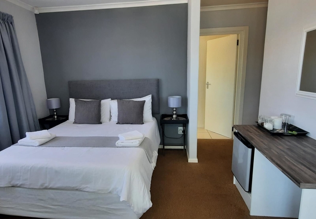 The Queen Luxury Room is on the ground floor and is furnished with a Queen-size bed. A mattress can be provided for a child. The en-suite bathroom is fitted with a shower, toilet and basin and offers complimentary toiletries. The room is equipped with a tea and coffee station, a bar-fridge and free Wi-Fi. The room is suitable for mobility impaired guests.There is a private downstairs balcony.