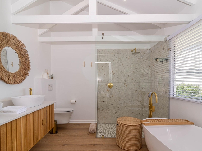 This beautifully appointed four-bedroom, four-bathroom holiday home in De Kelders is the perfect self-catering accommodation, offering stunning ocean views that enhance the overall experience.