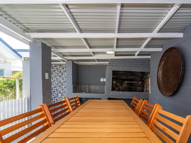 The spacious living area features a cozy fireplace, creating a warm and inviting atmosphere for relaxation, while the fully equipped kitchen includes a gas stove, oven, microwave, refrigerator, toaster, dishwasher, washing machine, and tumble dryer, making meal preparation and cleanup effortless. Guests can enjoy outdoor dining on the generous balcony, which is furnished with comfortable outdoor furniture and equipped with a gas braai for barbecuing. Each of the four well-appointed bedrooms features large double beds, ensuring a restful night's sleep for all guests. The bathrooms, with a combination of baths and showers, are equipped with modern amenities, including hairdryers, and provide a comfortable space for personal care. For entertainment, the home is equipped with a flat-screen TV, DStv, and complimentary Wi-Fi, catering to all your leisure needs. The non-smoking policy of the holiday home guarantees a clean and comfortable environment throughout your stay.