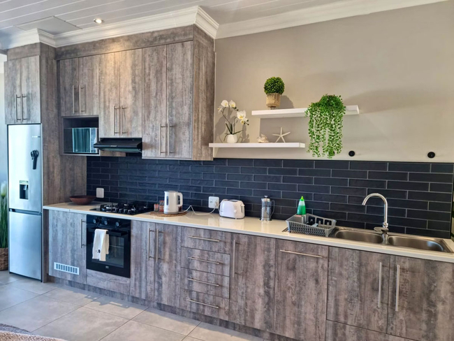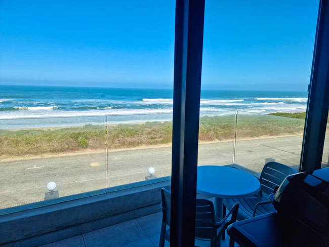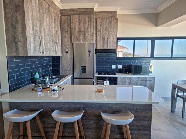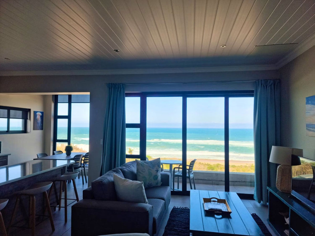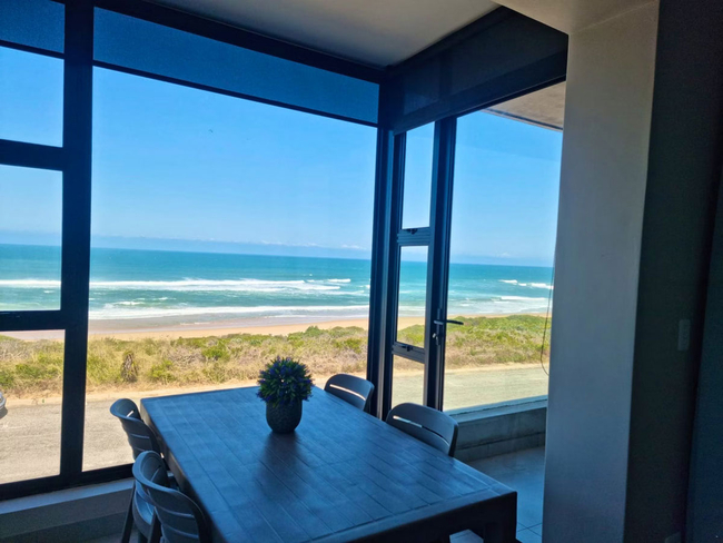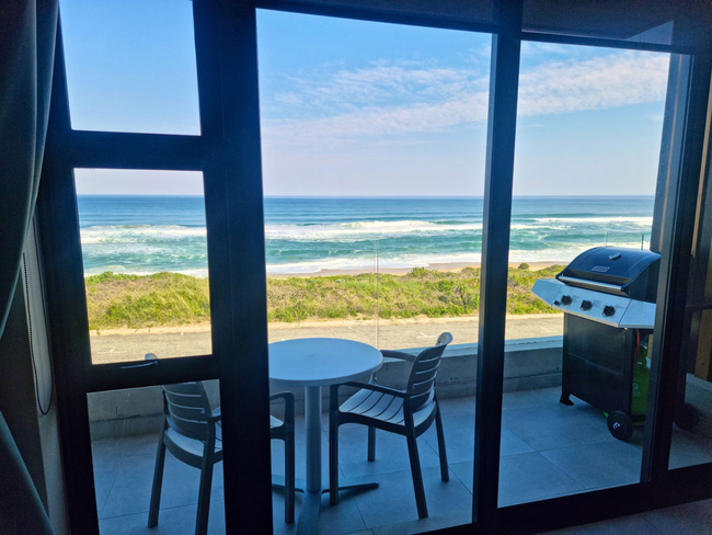 Balconies offer scenic views of the ocean and are furnished with outdoor seating and a gas braai, providing a relaxed space to soak up the sea air.