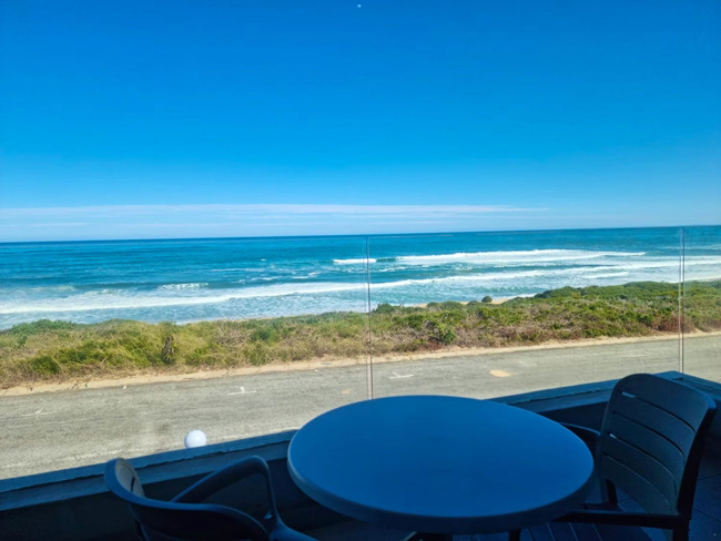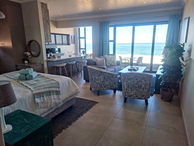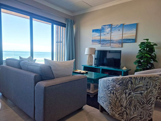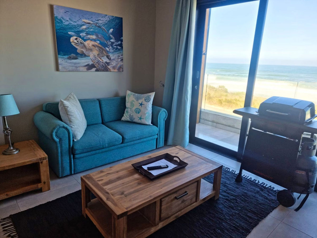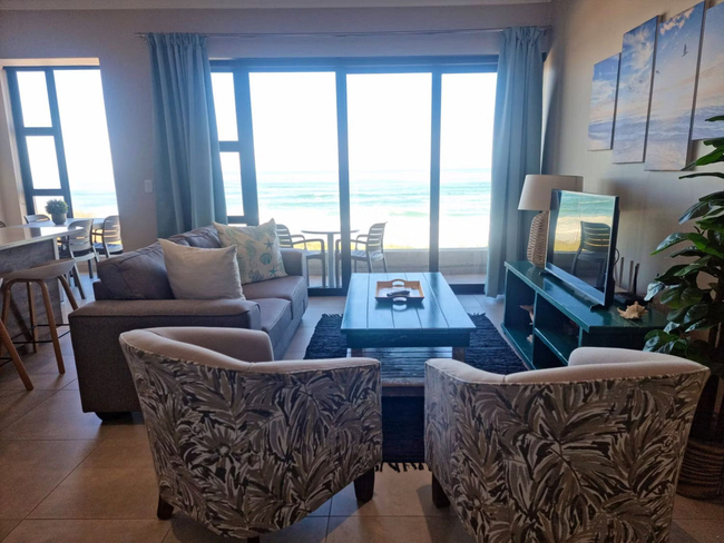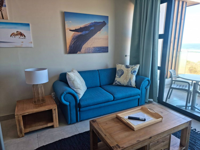 This inviting unit offers unforgettable, uninterrupted sea views and a comfortable, coastal retreat. It features a king-size bed in the open-plan living area, as well as a separate bedroom with a queen-size bed. The full bathroom, fitted with a bath and shower combination, is shared between the two sleeping areas. The spacious living area includes a fully equipped kitchen with a stove, oven, microwave, toaster, refrigerator, and coffee/tea-making facilities. Guests can unwind in the sitting area, enjoy entertainment via the TV with DStv, Netflix, and free Wi-Fi, or dine at the indoor table or outside on the private balcony. A gas braai adds the perfect touch for relaxed outdoor meals with ocean views. Additional conveniences include a hairdryer, iron and ironing board, and free private parking. This is a non-smoking unit.