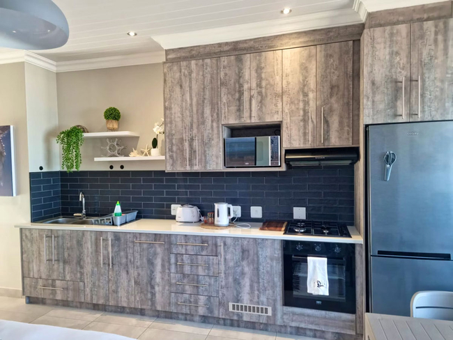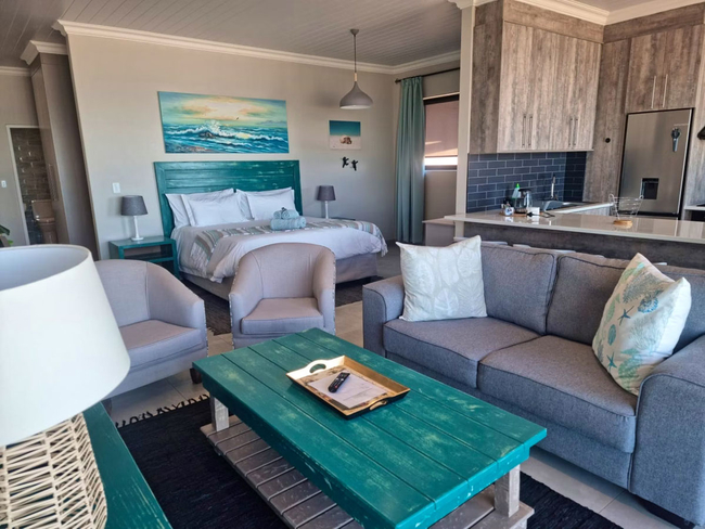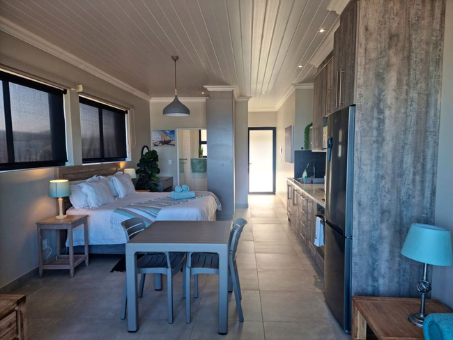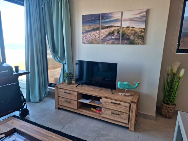 This unit boasts uninterrupted sea views and offers a peaceful coastal escape. Inside, you'll find a king-size bed and a sofa bed, along with an en-suite bathroom fitted with a shower only. The open-plan living space includes a fully equipped kitchen with a stove, oven, microwave, toaster, refrigerator, and a dining area—ideal for relaxed meals with a view. Entertainment is taken care of with a TV, Netflix, and complimentary Wi-Fi. Step out onto the balcony or patio to enjoy the fresh sea breeze, or make use of the braai facilities for a laid-back outdoor meal. Additional conveniences include a hairdryer, iron and ironing board, and free private parking.