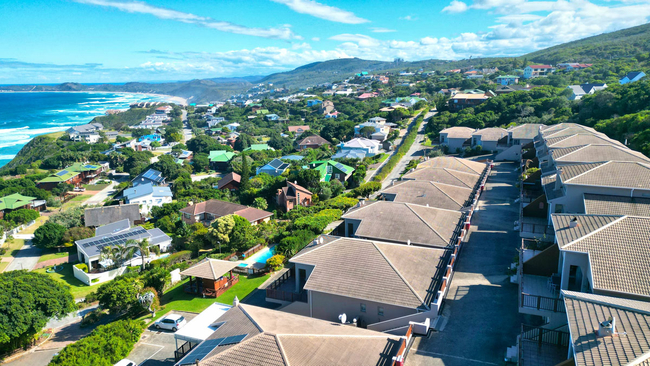 Waves & Whales luxury self-catering apartment sleeps up to 6 guests and features uninterrupted sea views from the main bedroom, lounge, and private deck. It offers guests high-end finishes, an inverter for backup power, and an outdoor entertainment area. It is within walking distance of Brenton-on-Sea Beach and trails.