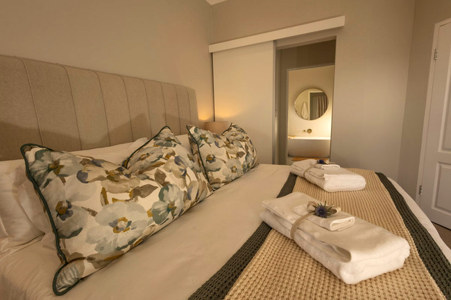 Positioned above the clear blue waters of the Indian Ocean, this contemporary and inviting holiday apartment offers comfort, privacy, and uninterrupted sea views. Guests benefit from close proximity to the beach, access to nearby forest trails, and a calm atmosphere that defines Brenton-on-Sea as one of the Garden Route’s lesser-known coastal treasures. The apartment comfortably accommodates up to six guests and consists of three bedrooms and two bathrooms. The main bedroom is appointed with a king-size bed and includes an en-suite bathroom fitted with a bath, shower, toilet, and washbasin. The second bedroom features a queen-size bed, while the third bedroom is furnished with two single beds. These two bedrooms share a bathroom equipped with a shower, toilet, and washbasin. Quality bed linen and bath towels are provided for guest convenience. The open-plan living space incorporates a well-equipped kitchen fitted with a stove, oven, microwave, dishwasher, fridge-freezer, and tea- and coffee-making facilities. A washing machine and tumble dryer are also available for longer stays. Meals can be enjoyed at the six-seater dining table, while the lounge offers comfortable seating and a Smart TV with streaming services. Additional features include UPS-backed internet connectivity and rechargeable lamps to ensure uninterrupted comfort. Outdoor features include a balcony with seating, a private gas braai, and access to a communal swimming pool. Secure parking is provided in a covered garage.
