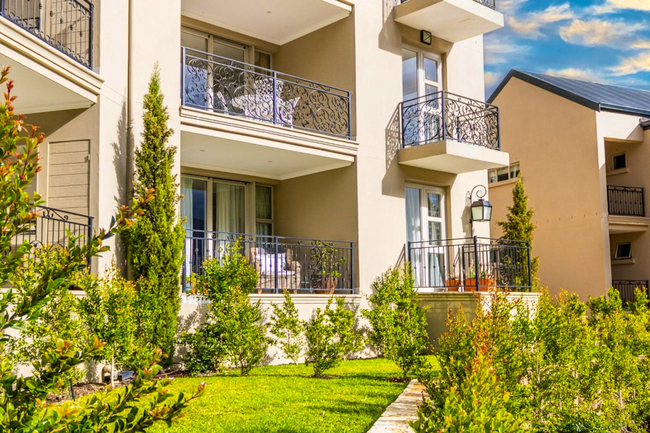 Villa 64 offers breathtaking views of the Mont Rochelle Mountains and the Chamonix vineyards from its third-floor position. The villa features two stylish bedrooms, each with an en-suite bathroom and private balcony, creating a restful and private retreat for guests.
