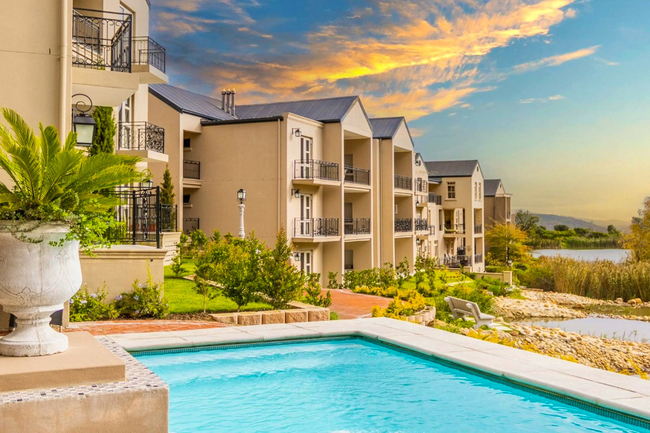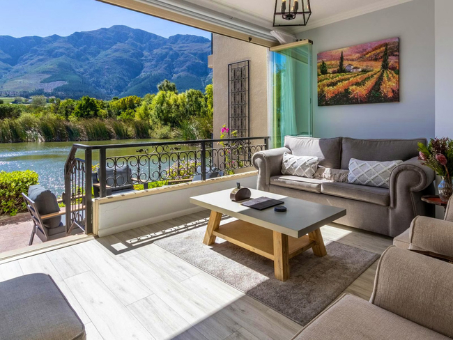 Set in a prime position on the shores of Patrysfontein Lake, Villa 11 enjoys uninterrupted views of the striking Mont Rochelle Mountains and the rolling vineyards of Chamonix. This well-appointed villa offers a peaceful setting where natural beauty meets modern comfort, creating an inviting space for a relaxing stay.