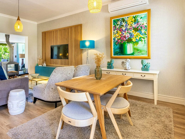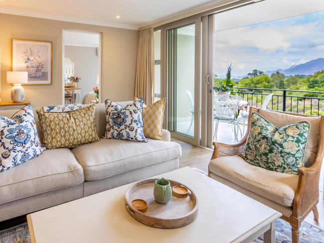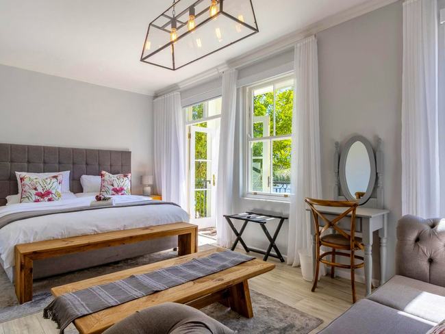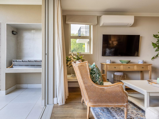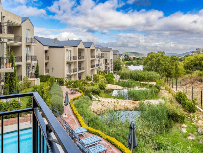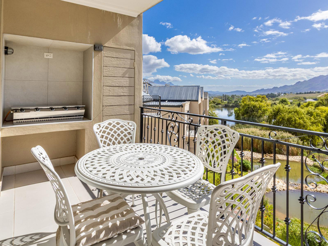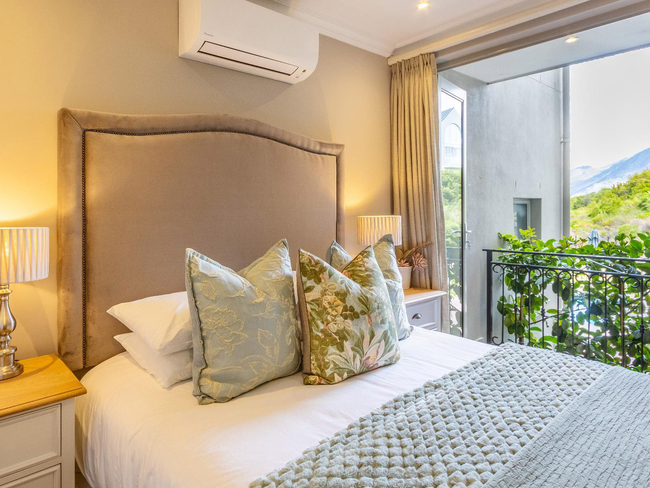 Villa 66 is a serene two-bedroom retreat set beside a tranquil mountain stream, offering the perfect blend of comfort and natural beauty. Both bedrooms feature Juliet balconies, and the villa boasts a spacious balcony with a built-in gas braai, ideal for outdoor dining and relaxation. Guests can enjoy easy access to the pool while taking in peaceful views of the surrounding Winelands, close to Franschhoek’s vineyards and restaurants.
